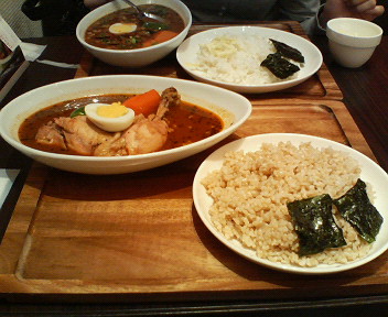 久々に大型SC 「モレラ岐阜」へ行ってきました。 単純に暇だったからなんですが 雨の休日なだけあって 結構な人ですが なにせ広いSCなんで そんなに混雑感はなかったですが お昼少し前に到着したので先に食事でもと フードコート周辺のレストラン街へ そこには既に行列が・・・・orz 以前・・・といっても 相当前・・・去年か? 「幸せのタメイキ (´ ▽`).。o♪♪」 の美波さんからお勧めいただいてたんですよ もう相当前なんですわ それからモレラへ来る事も無かったんですが(言い訳です) やっと行ってきました。 「スープカレー 心」 です。 幸いまだ満席にはなっていなかったので すんなり着席 「骨付きチキンスープカレー」をオーダー ライスは玄米か白米をチョイスできますが 玄米を 入り口レジ横にあったお帰り客向けチラシをこっそりGETしてたんで チラシに付いてる モッツアレラチーズのトッピング無料も付いてましたが 僕はご遠慮嫁のみトッピング付けました あっ嫁っちは 「期間限定 ひき肉とひよこ豆スープカレー」をオーダーでした。 早速パクリ ウンモァァ―――――――(゚д゚;)――――――――――ッ!(殿様風) カレーと玄米もいい感じです 日頃はCoCo一番のようなノーマルカレーばかりですが これもアリ!ですね。 キーマカレーといい 最近はいろいろなカレーがありますよね。 どれも旨いです このスープカレー カレーももちろんですが 骨付き肉も骨離れもよくって柔らかく 時間かけて仕込んである感じ(確認してないですが印象です) しかも店内はSC内のレストランって感じのしないお洒落な感じで 女性にも居心地のいいお店じゃないでしょうか 実際店内のお客はカップルや若い(爆)女性客中心で 男同士だったら100入ってないです。 この「スープカレー心」ですが 札幌に本店を 首都圏を中心に全国展開しているようですね。 御見それしました。 岐阜県本巣市三橋1100 モレラ岐阜1F