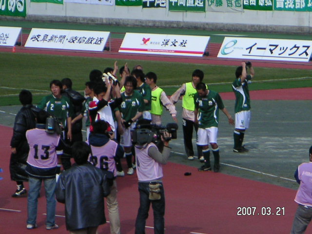 何だかブームが廃ったイメージを持つ国内サッカーリーグですよね。 Jリーグには トップのJ1 J2がありその下にJFL そのJFLに今年から参加する 「FC岐阜」をご存知でしょうか? それまでJFLで活躍していた地元企業のクラブチームが解散 その後岐阜にはクラブチームが存在していなかったのですが 県サッカー協会の後押しのもと 岐阜経済大学職員 学生 地元民間有志を中心に結成されました。 そのFC岐阜がJリーグ加盟申請を行っていたのですが 企業としての採算面等々の諸問題によって 保留されていたのですが 地元ボランティアによる署名活動等画評価され 条件付きで加盟できる事になりました。 そして来年からは ”岐阜県”もバックアップするようです。 健全なお金で応援して欲しいものですね(笑) そのFC岐阜の地元でゲーム 「FC岐阜 vs アルテ高崎」戦のチケットを頂きましたので 昨日観戦してきました。 有名ブロガーを多く排出している群馬県 そこを本拠地にするチームとの対戦とあってdorago19の応援にも力入るって話です。 会場に到着すると 選手がサイン会をしております。 ぶっちゃけて言うと 初めて見るFC岐阜 初めて見るサッカーの試合てことで お客もほとんど居ないとタカをくくっておりましたが 県内のサッカー少年少女も多く サインをジャージにしえもらっている子や レプリカユニホームにサインをもらっている人もおおくいました。 しかし初体験のdorago19 誰が誰だかわかりません>< が 唯一知っているのが 森山泰行選手 ![]() 隣の中学出身で現在Jリーグ首位の 「名古屋グランパスエイト」にも所属していました。 通称”ゴリ” でもって会場では ゴリサンドも売ってます。 @500.- 中身はこんなんです。 パン生地のようなものの間に チキンが挟まってます。 結構好きな味! 会場に入ると 既にサポーターの皆さんの応援もヒートアップ 90分もつのかよって勢いです。 試合が始まると やはりJFL TVで見海外サッカーや ワールドカップほどのキレは無いですが 生で見る迫力や応援の熱気はやはりライブ感覚が大事 幾度もチャンスを逃す攻撃にいつの間にか手に汗かいてました。 後半にPKのチャンスをGETしたFC岐阜 キッチリ決めて1-0 その後絶妙なセンタリングからのゴール 気が付けば 2-0で勝利!! やるねFC岐阜! 試合後に応援席前に来る選手たち コノ後ヒーローインタビューもありました。 主催者発表によると 来場者数 5082人 結構見に来ていましたね。 FC岐阜の活躍を機にもっともっと岐阜が盛り上がってくれるといいんですけどね。 これもナニカのご縁ってことで dorago19 はFC岐阜を応援する事にいたしました。 その中でも要チェック選手は ハイ!この方 中尾康二選手背番号19です。 ハイそれだけの理由です。 早速メールも送ってみちゃいました(笑) 今後も 「FC岐阜」から目が離せないですよ。 PR |